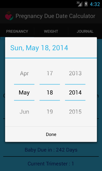 该应用程序的一个关键功能是能够在每两周存储以千克或磅为单位的体重,从第0周开始直到第40周。用户可以查看他们不断增加的体重的图形图表,缩放,缩小和移动图表。该应用程序还允许用户在日志选项卡中每周存储他们的感受并阅读简单文本的日志。用户可以水平滑动以切换选项卡,并在最后一个选项卡上向右滑动以返回第一个选项卡。所有值都被存储,因此用户在以后打开应用程序时无需再次输入它们。